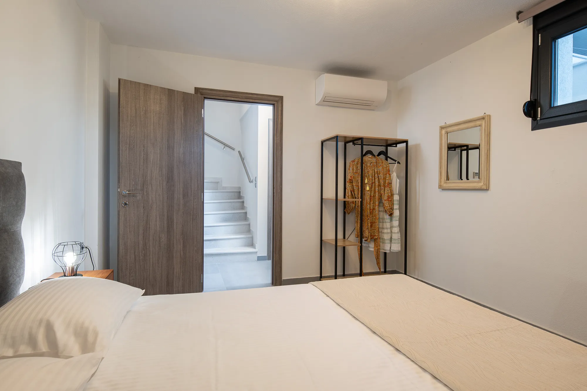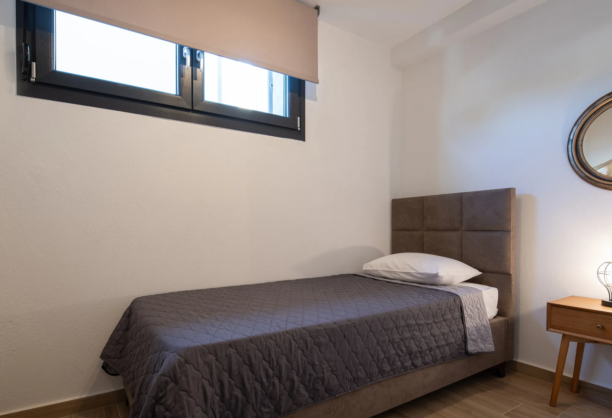 Semi-groundfloor: One Bedroom with one Double Bed, one Single Bed and Bathroom